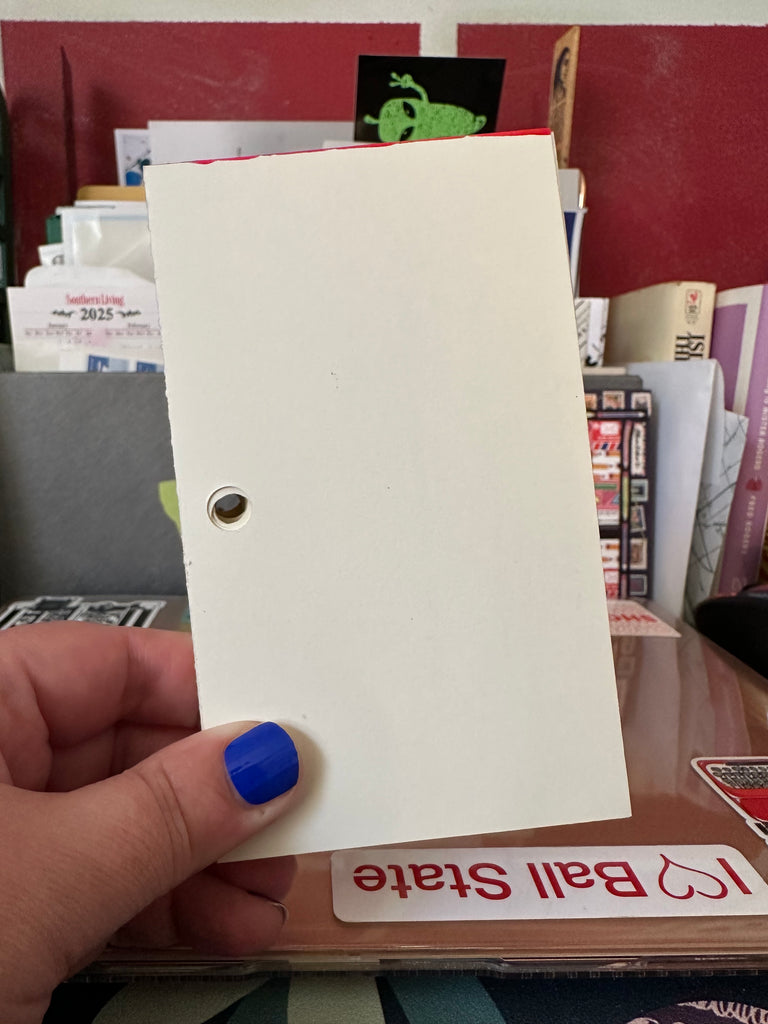 These notepads are made using discarded card catalog cards from the library. (Remember those?)